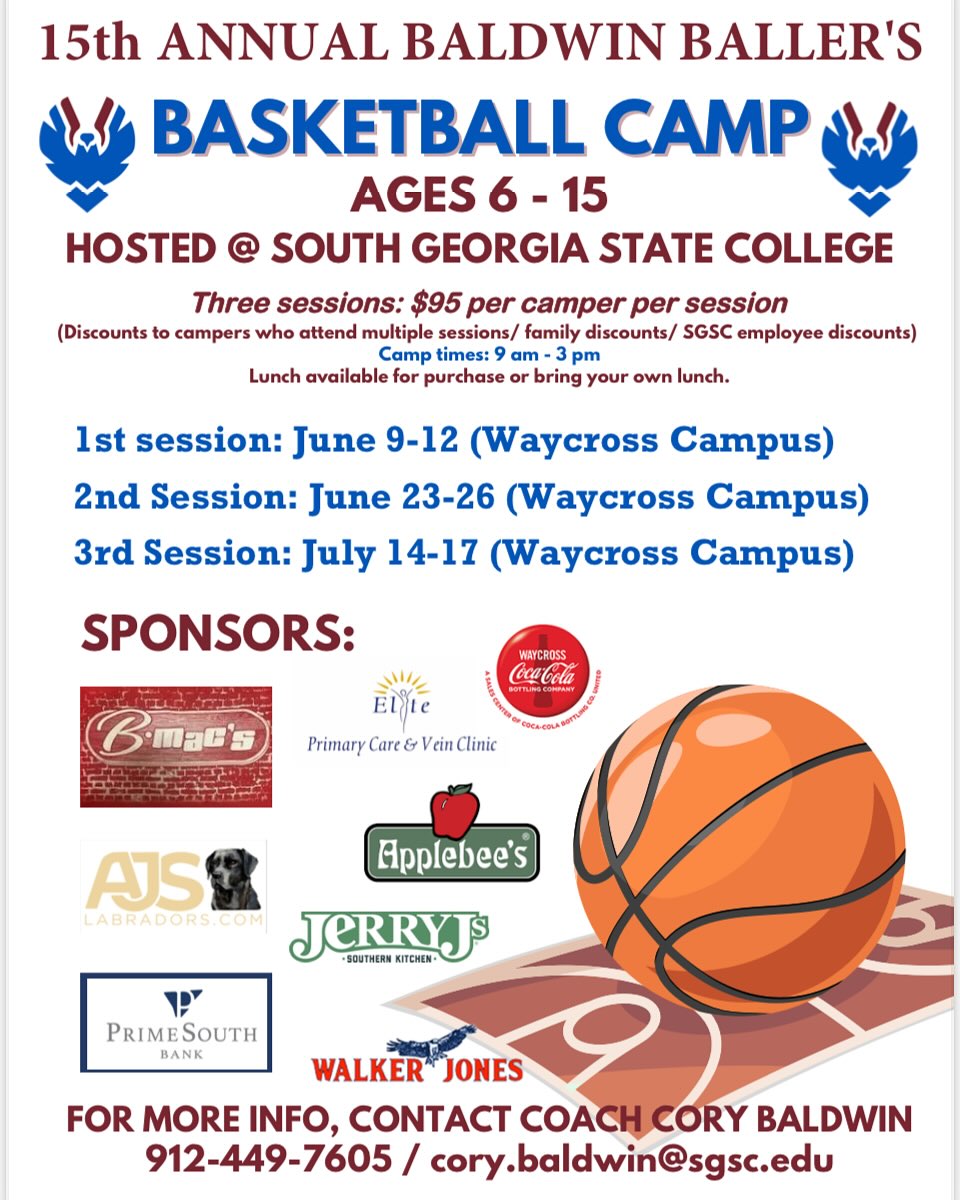*1st session: June 9‐12 *2nd Session: June 23‐26 *3rd Session: July 14‐17 (All on Waycross Campus)
