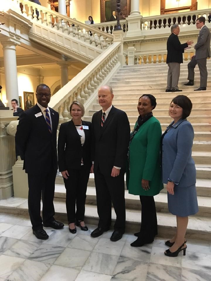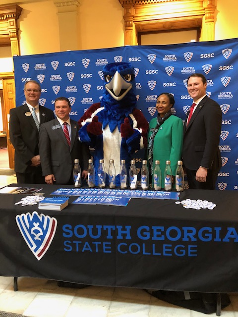 This year’s inaugural State College event allowed the college to share the SGSC story with elected officials and visitors at the Capitol. SGSC's mascot, Tally, was on hand to represent the college and have photos taken with guests inside the Capitol's atrium. Participants attending this year's event in support of SGSC included SGSC’s President Dr. Ingrid Thompson-Sellers; Dr. Greg Tanner, vice president of advancement, government relations and athletics; Dr. Jim Cottingham, SGSC Foundation trustee; Ms. Lisa Hodge, Douglas-Coffee County Chamber of Commerce president; Ms. Jaleen Washington, director of recruitment and special programs, Ms. Amy Hancock, communications outreach manager; Ms. Sandra Adams, dean of students, Ms. Barbara Obrentz, communications coordinator, Mr. Ernest Wesley and Ms. Zoe Thompson, student leaders and Phi Theta Kappa members. The group was welcomed at the Capitol by Senator Tyler Harper from District 7, the Governor’s Floor Leader Representative Dominic LaRiccia from District 169 and Representative Clay Pirkle from District 155.