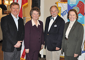 The newly formed partnership between South Georgia State College (SGSC) and the Okefenokee Swamp Park (OSP) was the featured program at a recent meeting of the Douglas Rotary Club. Dr. William Clark (third from left), president of the OSP’s Board of Trustees, told the Club of the Park’s history and the benefits of the SGSC partnership. SGSC science faculty can utilize the Park as an outdoor laboratory, and the Park’s educational resources will soon be made available all over the world through a fiber optic internet connection. Dr. Patricia Brown (far right), special assistant to SGSC President Dr. Virginia Carson, introduced Dr. Clark to the Club. Dr. Brown was one of the catalysts behind the creation of the SGSC-OSP partnership. Rotary Club member Dr. Jim Cottingham thanked Clark for his presentation. Not shown: Martin Bell, OSP general manager.
