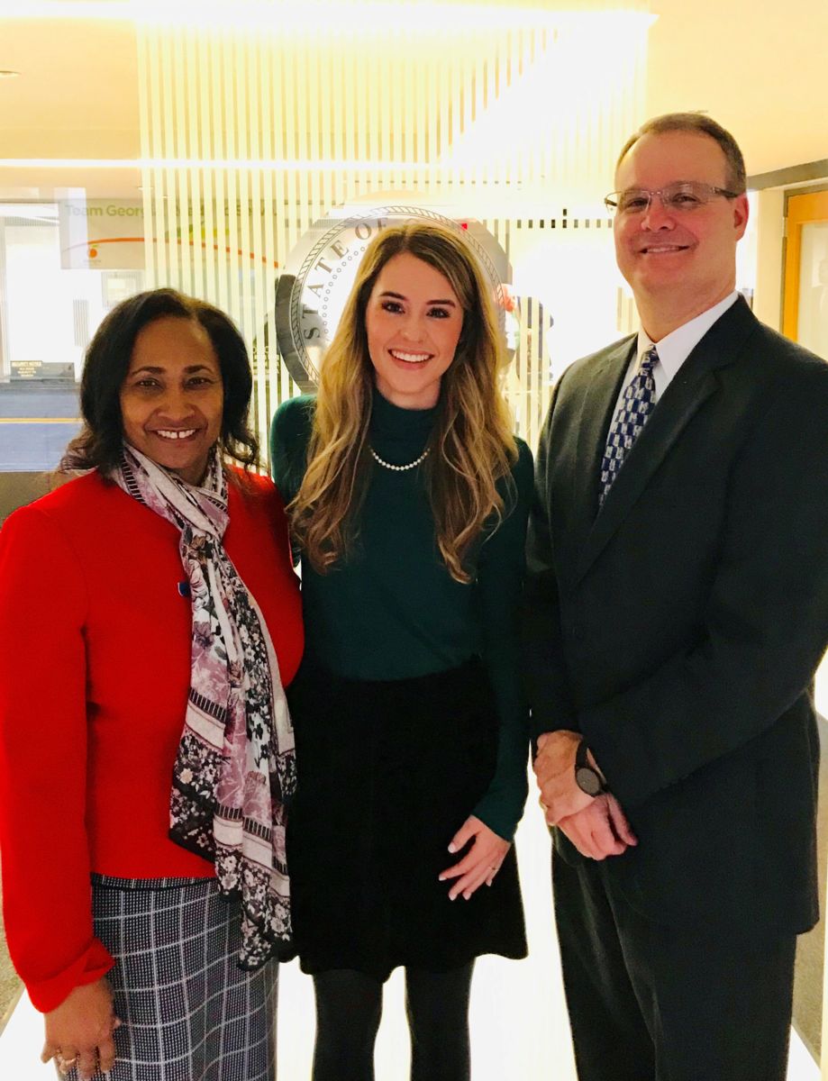 SGSC President Dr. Ingrid Thompson-Sellers and Dean of Students Dr. Greg Tanner joined Hannah Higginson (center) at the Academic Recognition Day Award Ceremony in Atlanta.