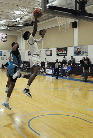 PHOTO: Jalen King flies high for two of his 16 points Saturday afternoon against Combine Academy.