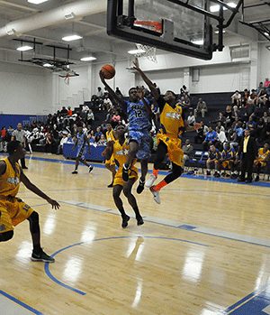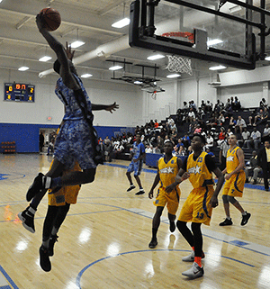 TOP PHOTO: Zaquavian Smith flies high Wednesday night against the Martinique National Team.