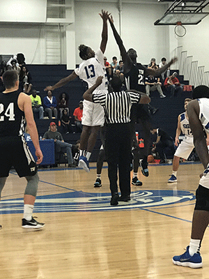 PHOTO: SGSC’s Dwayne Wilson officially tips off the Hawks’ regular season Thursday night on SGSC’s Douglas Campus.