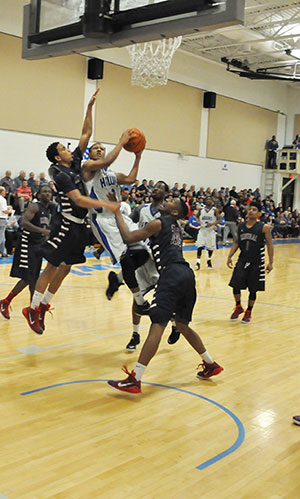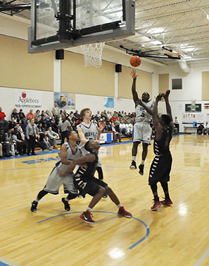 TOP PHOTO: Jovante’ Spivey had 18 points Tuesday night in the GCAA quarterfinal against Central Georgia Tech.