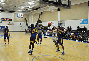 The South Georgia State College Hawks defense forced a missed shot in the lane with two seconds left in regulation and watched the ball roll out of bounds as time expired to seal a 70-69 win over the Florida State College-Jacksonville (FSCJ) Blue Wave Saturday afternoon.