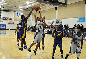 TOP PHOTO: Zaquavian Smith drives for a layup Saturday afternoon vs. Florida State College-Jacksonville.