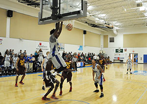 BOTTOM PHOTO: Demontrez Austin electrified the home crowd Saturday afternoon with his second dunk in the second half against Georgia Perimeter.