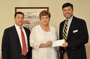 John Hereford (right), president of Miles-Odum Funeral Home in Waycross, recently presented a contribution on behalf of the company to the James M. Dye Foundation on South Georgia State College’s (SGSC) Waycross Campus. Accepting the contribution was Foundation Treasurer Cindy Sowell while Miles-Odum Secretary and Treasurer Jonathan Roundtree attended the presentation. Miles-Odum has been a consistent supporter of the Foundation’s work for many years. The late Robert Odum, co-founder of the funeral home, served as Foundation President from 1983-1984. The James M. Dye Foundation has been serving SGSC’s Waycross Campus for 42 years, providing funding for student scholarships and other campus initiatives not funded by the state of Georgia. For more information about the Foundation or to make a contribution, please call 912.449.7510 or email taylor.hereford@sgsc.edu.