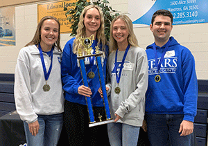PHOTO 3: Team A from Pierce County High School won first place in the South Georgia State College High School Mathematics Tournament. (L-R) Emily Stovall, Camille Hendry, Elizabeth Griner, and Chase LeFevre.