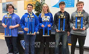 PHOTO 2: Individual winners in the South Georgia State College High School Mathematics Tournament were (L-R) Cody Page (first place; Ware), Chase LeFevre (second place; Pierce), Camille Hendry (third place; Pierce), Grayson Rockett (fourth place; Coffee), and Clark Stovall (fifth place; Pierce).