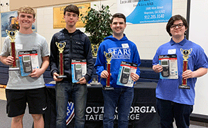 PHOTO 1: Top school winners in the South Georgia State College High School Mathematics Tournament were (L-R) Luke Carter (Brantley), Grayson Rockett (Coffee), Chase LeFevre (Pierce), and Cody Page (Ware)