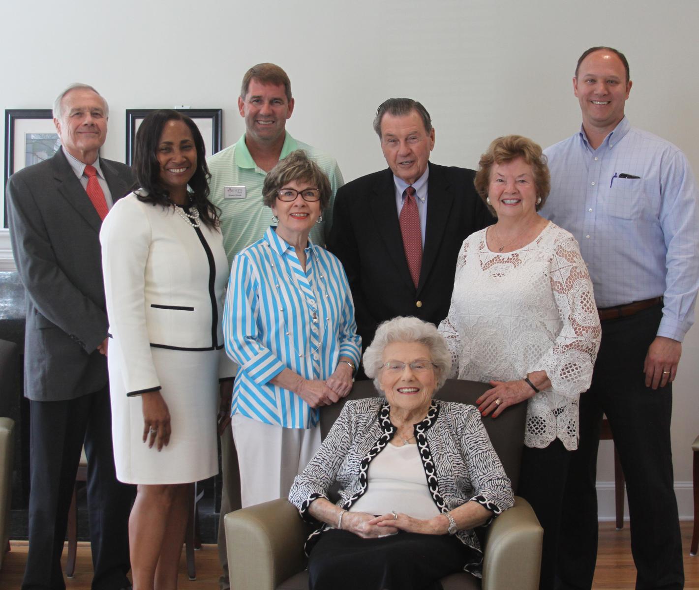 Mr. Max Harrell, SGSC President Dr. Ingrid Thompson-Sellers, SGSC Foundation President Mr. Shane Shook, Ms. Beth Bridges, Mr. Billy Crider, Jr., Mrs. Emma Lou Aughinbaugh, Mrs. Lounell Gillis Morgan, and SGSC Foundation Vice President Mr. Chris Tuten