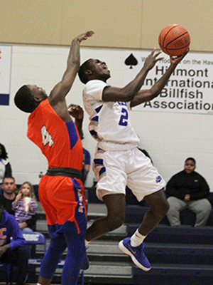 PHOTO: Nate Louis drives for two of his 17 points Saturday afternoon against Georgia Highlands. (Photo courtesy of Bo Carter)