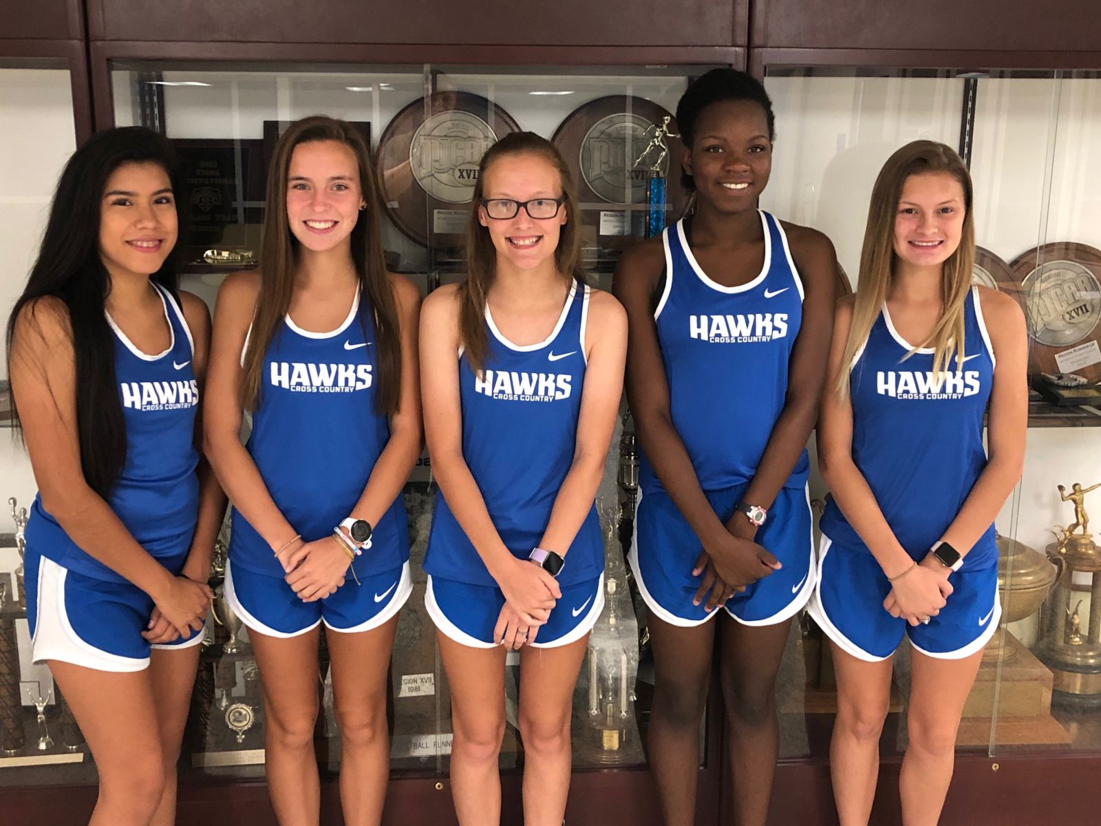 (L to R) Members of the SGSC 2019 Cross Country team are Lileni Morales from Coffee County, Kalli Wilkes from Jeff Davis County, Brooke Reese from Wayne County, Shanya Washington from Ware County and Kaitlyn Thigpen from Atkinson County.