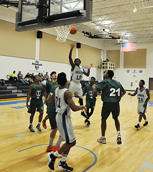 PHOTO: Dunovon Robinson scores two of his eight points against TAAG Academy.