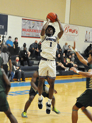 A combination of balanced scoring and strong defense carried the Hawks (8-0, 2-0) to victory once again, with four players scoring in double figures. Bryce Brown led the scoring with 20 points, four rebounds and four assists. Jordan Coffee had 12 points and three assists. Jalen King finished with 11 points, and Nik Jiles had 10 points and nine assists.