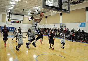 PHOTO: Jovante’ Spivey scores two of his 31 points in the first half Wednesday night against South Georgia Tech.