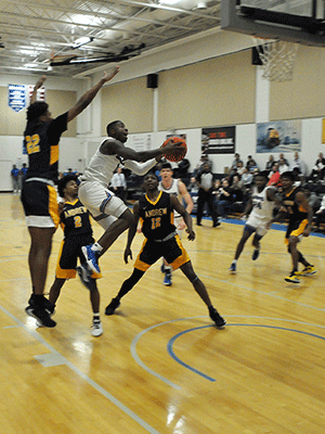 PHOTO: Marquise Jackson drives to the basket Wednesday night against Andrew College.