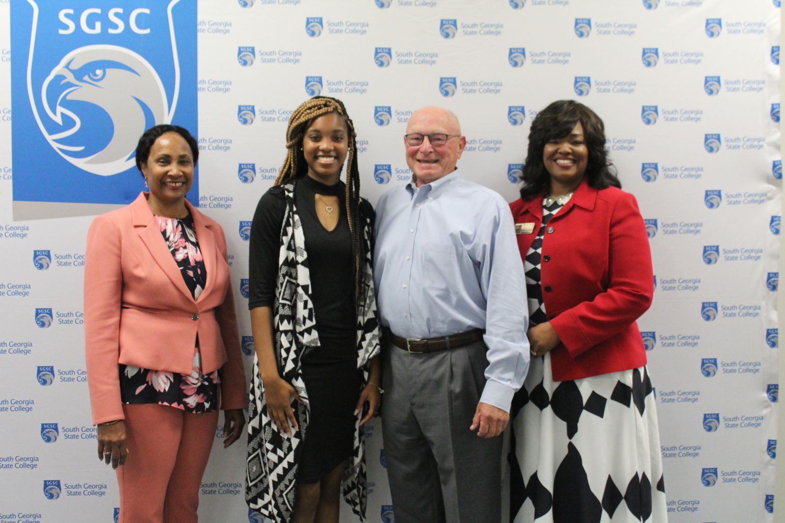 L to R: Dr. Ingrid Thompson-Sellers, SGSC President; Miss Asia Denning, scholarship recipient; Mr. Tom Smith, SGSC Foundation Trustee; and Dr. Tracy McClelland, SGSC Foundation President