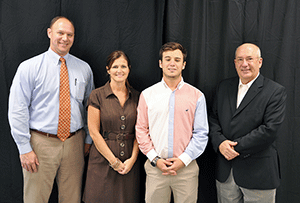 THIRD PHOTO: (L-R) Mr. Chris Tuten (SGSC Foundation Treasurer and Raymond James Financial Advisor); Ms. Marsha Kirkland (Jason’s mother and DNB employee); Jason Miller (DNB/Gene Chambers Memorial Scholarship recipient); and Mr. Brian McNeill, SGSC Foundation President.