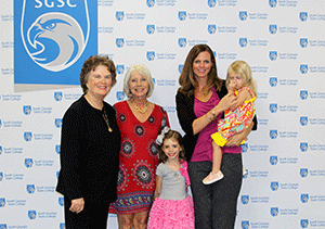 FOURTH PHOTO: (L-R) SGSC President Dr. Virginia Carson, Pat Purvis, and Nichole Whitley and her daughters Braylin and Ryleigh Dayne celebrate the completion of the Dane Purvis Leadership Award endowment.