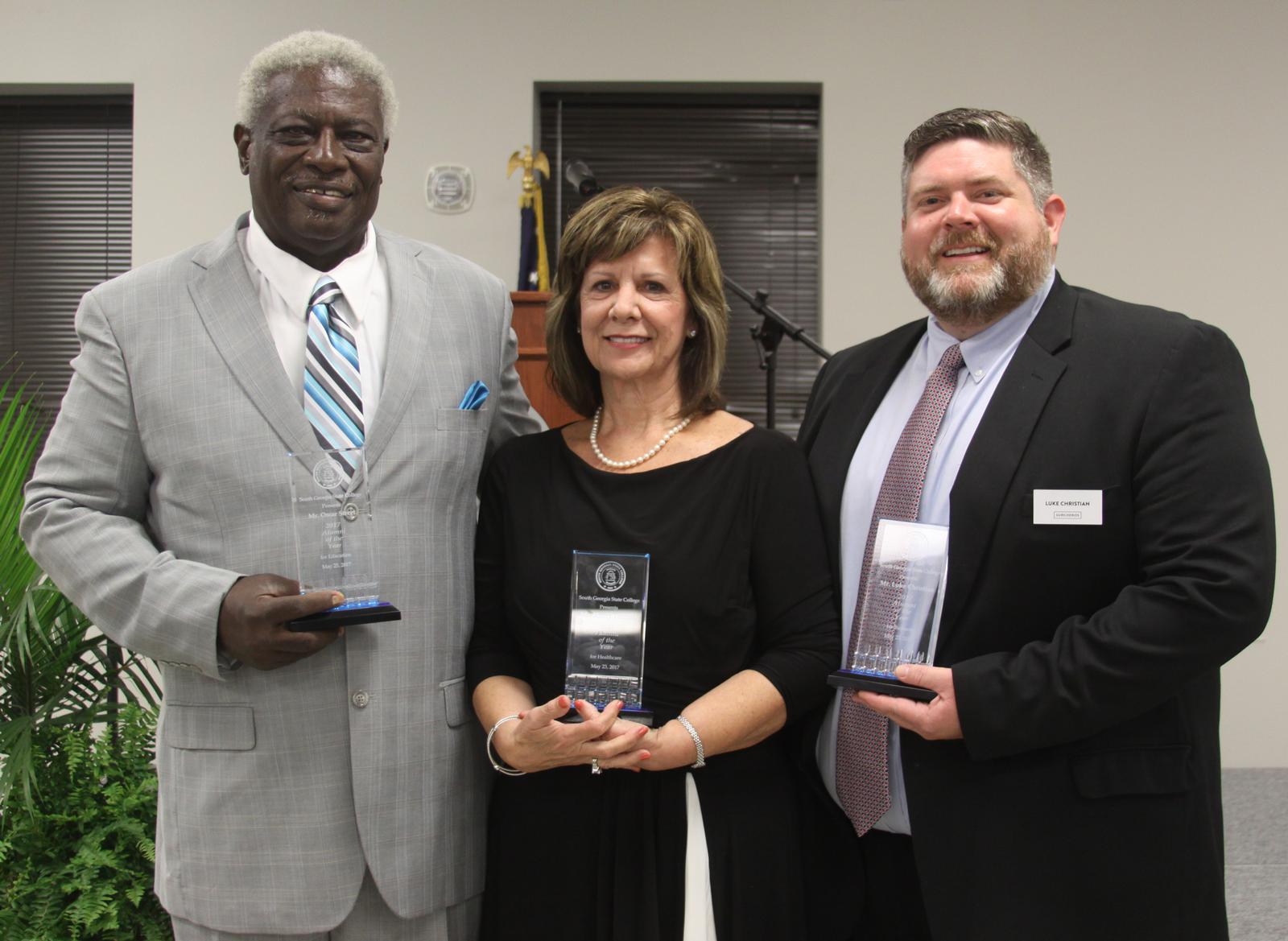 For the culminating highlight of the Gala, the SGSC Foundation announced the recipients of its 2017 Alumni of the Year awards. Mr. Brian McNeill, SGSC Foundation Past President, presented the awards to Mr. Luke Christian in the area of business; Mr. Oscar Street in the area of education, and Ms. Sherry Thomas in the area of healthcare. As Mr. McNeill pointed out, “Each of the individuals being recognized has been a staunch supporter of the College and has given their time and talents to help serve our students and our overall mission.”