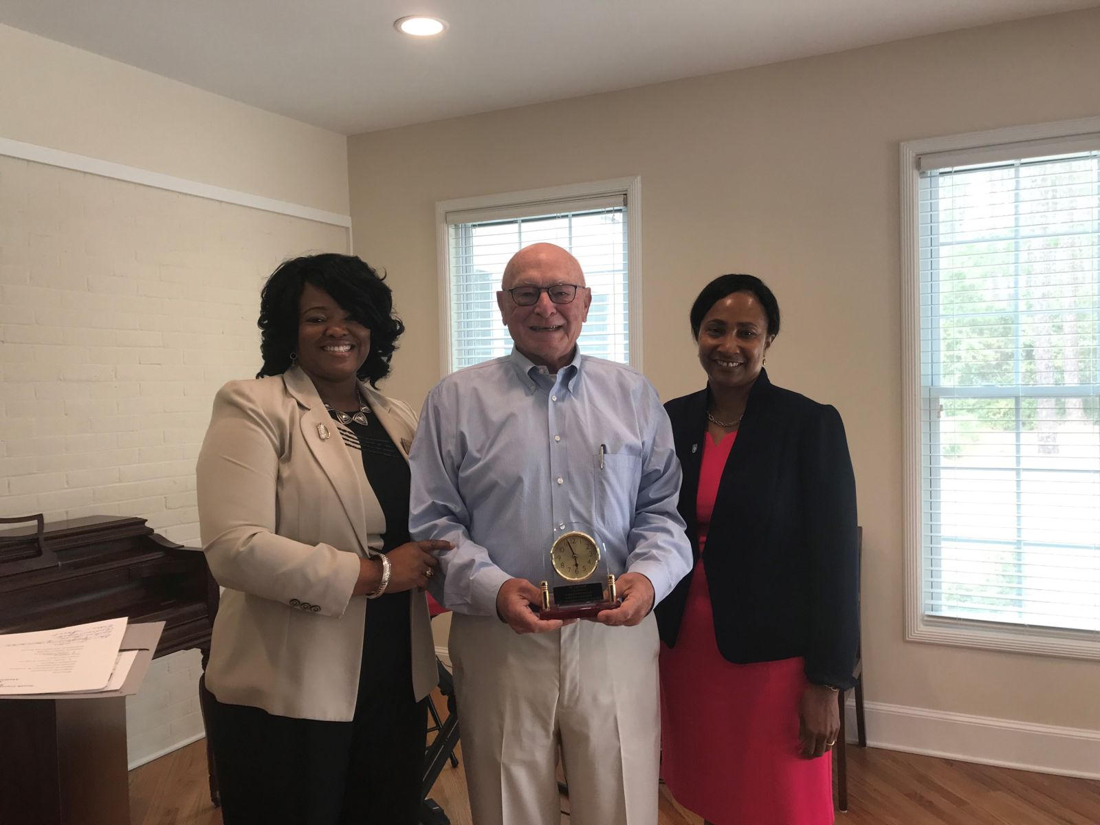 In addition to welcoming new board members, the SGSC Foundation installed a new slate of officers for the 2019-2020 fiscal year. Dr. Tracy McClelland, Founder and CEO of Ycarte’ Health Career Center, will serve as President. Mr. Donny Bradshaw, CFO of Elixir Extrusions, will serve as Vice President. Ms. Stacey Hill, Administrator of Vista Park Health and Rehabilitation, will serve as Treasurer. Mr. Keith Woodward, Optima Chemical Supply Chain Manager, will serve as Secretary. Mr. Tom Smith, community volunteer and retired business executive, will serve as Past President. During the meeting, Mr. Smith was also recognized and presented a token of appreciation for his service as President for the 2018-2019 year.