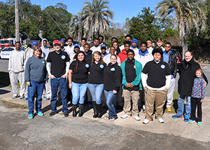 South Georgia State College’s men’s basketball team joined members of the Waycross Campus Student Government Association (SGA) to watch the annual Martin Luther King, Jr. parade held January 18 in downtown Waycross (top photo). SGA members in attendance included (bottom photo; back row L-R): D. J. Carter of Waycross, Aaron Moore of Blackshear, and Kevin Nguyen of Waycross. Front row (L-R): Haley McQuaig of Waycross, SGA President Destiny Smith of Hoboken, Maggie Santana of Blackshear, and SGA Advisor Merry Harris. The Waycross Campus SGA establishes and maintains communication between Waycross Campus students and the College’s administration and faculty. It cultivates and preserves the ideals of responsible citizenship on campus and helps to create an atmosphere of learning. For more information about the Waycross Campus SGA, please contact Merry Harris at (912) 449-7599 or merry.harris@sgsc.edu.