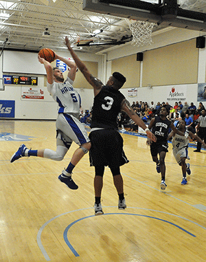 PHOTO: McKinley Chambless drives for two of his 10 points Saturday afternoon against Gordon State.