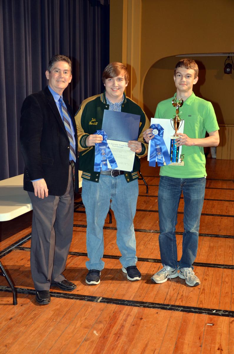 Second Grand Prize overall in the Junior and Senior division went to eighth grader Carsen Morris of Karen Swain’s Appling County Middle School class for his project, “Diamonds in the Rough”. First Grand Prize overall, which included a ribbon, trophy, and $1000 scholarship to South Georgia State College courtesy of the SGSC and Dye Foundations, was awarded to seniors John Barnhill and Kristaps Berzinch of Amanda Bridges’ Ware County High School class for their team project, “Recycling Computers for Distributed Protein Folding Simulations”.