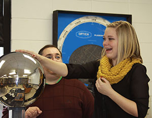 BOTTOM PHOTO: Coffee High students used the Van de Graaff generator in a hands-on lab with Dr. Charles Johnson, SGSC’s professor of physics and chair of the Division of Natural Sciences, Physical Education, and Mathematics.