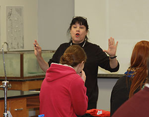 TOP PHOTO: Dr. Rosa Guedes, assistant professor of biology/ecology, speaks with students from Coffee High School.