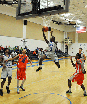 PHOTO: Karim Mawuenyega drives for two of his eight points Saturday afternoon against Summer Hill.
