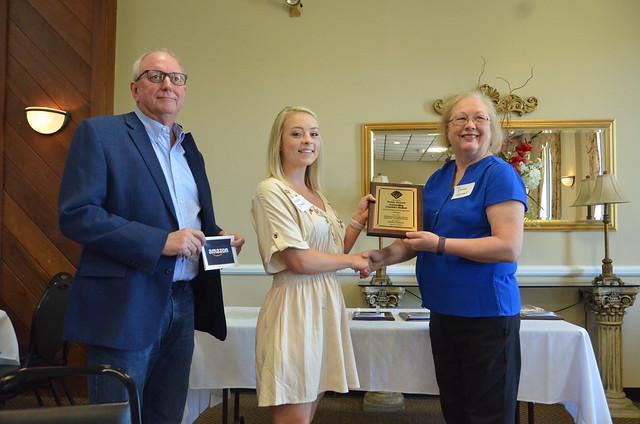 President of Optima Chemical Gene Williams (left) and Chair of the Southwest Georgia American Chemical Society Donna L Gosnell, PhD (right) present the award to Mollie Rowell (center).