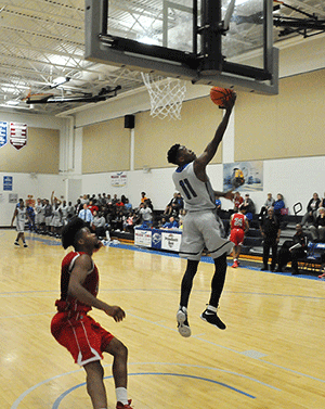 PHOTO: Zaquavian Smith makes a reverse layup Monday night against Atlanta Metro.