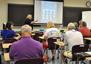 PHOTO: Sara Selby, interim director of institutional effectiveness at South Georgia State College, leads one of the first faculty training sessions last fall in how to use the iPad mini. The iPad minis will allow SGSC faculty to incorporate innovative “flipping” techniques in selected courses beginning in August.