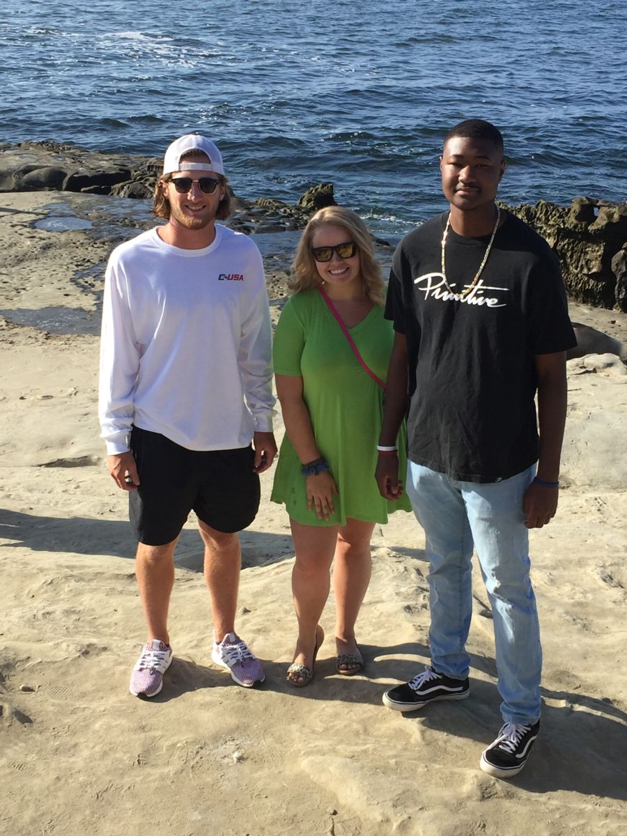Cole Escher of Green Cove Springs, Fla., Kristen Davis of West Green, Ga. and Ernest Wesley of Fitzgerald, Ga., enjoy their first day in California by visiting the Pacific Ocean at La Jolla Cove.