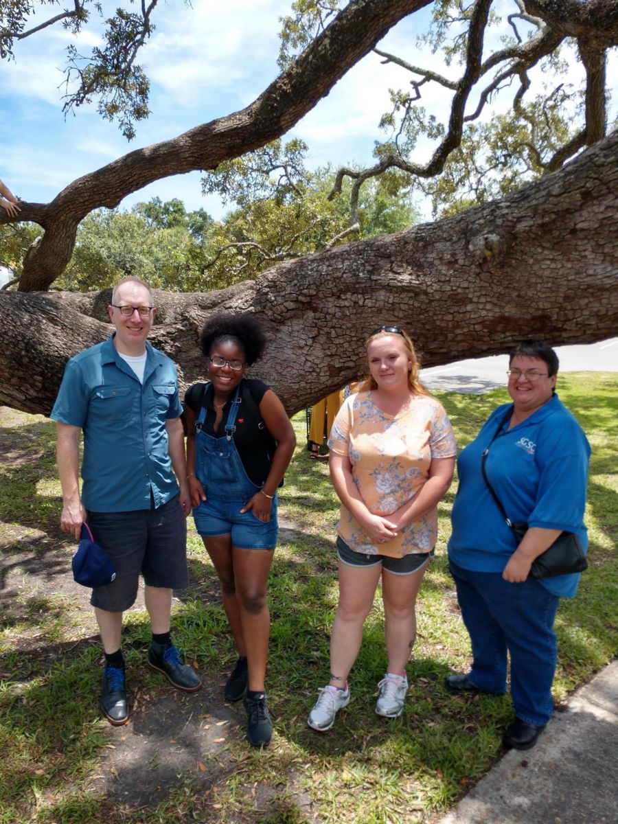 Dr. Thomas Agostini, SGSC assistant professor of history, Victoria Wyatt, a dual enrolled student from Waycross, Ga., Kelly Griffis from Patterson, Ga., and Sandra Adams, SGSC interim dean of students and housing, take time on their trip to view one of the massive oak trees located on St. Simons Island.