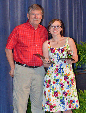 FIRST PHOTO: Jenna Rozier (right) of Hazlehurst, Ga. was the recipient of three awards during the annual Honors Night ceremony on South Georgia State College’s Douglas Campus. Wes Brown, vice president for student success, congratulated Rozier for her accomplishments.