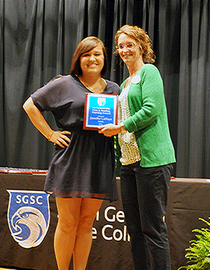 THIRD PHOTO: Jennifer LaHaye (left) of St. Simons Island, Ga. received the Vera B. Doering Nursing Award during the annual Honors Night ceremony on South Georgia State College’s Waycross Campus. Kasey Strickland, assistant professor of nursing, presented the award to LaHaye.