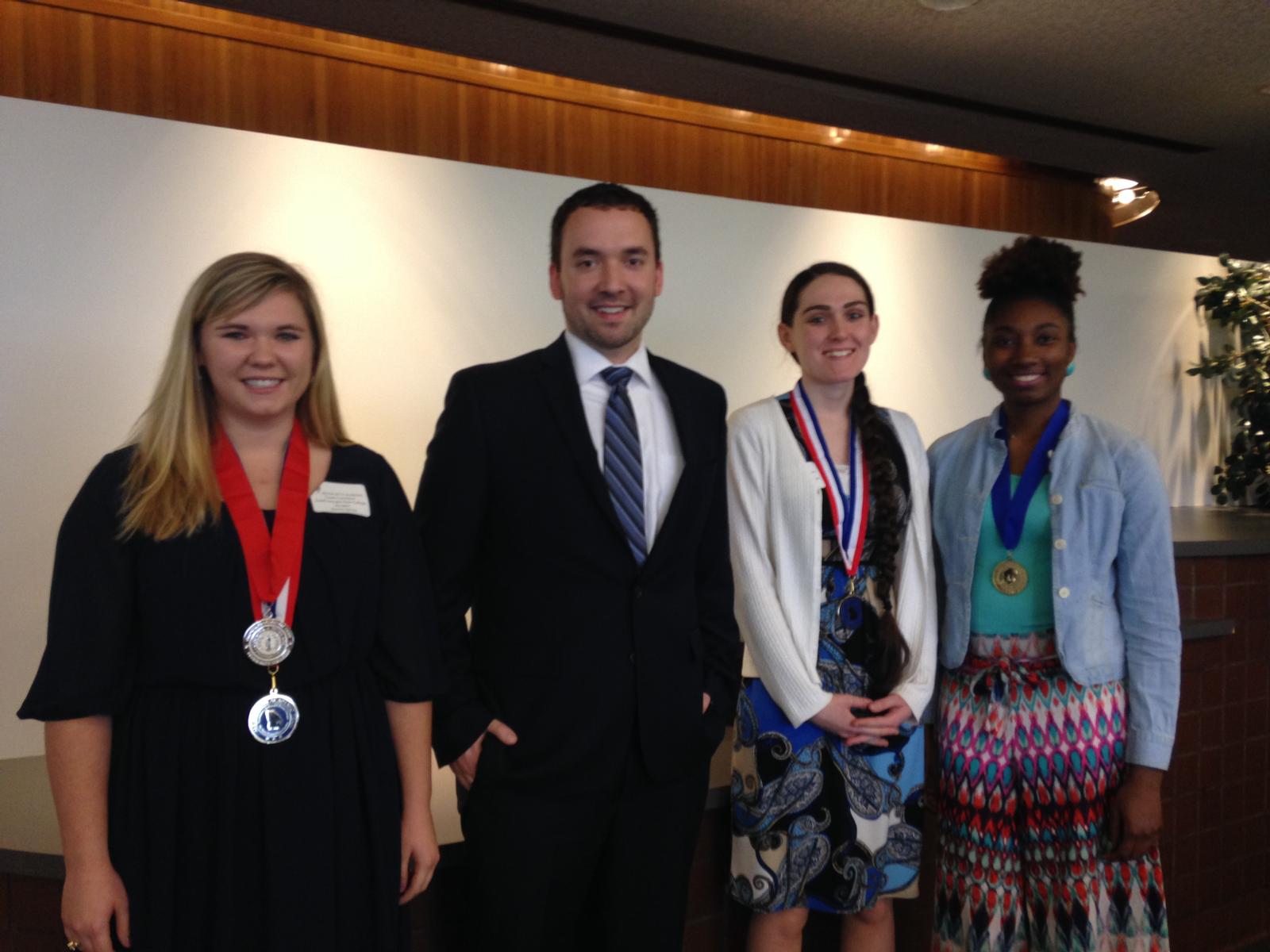 SGSC Students Kailtin Spivey, Sylvia Smith, and Ronesea Styles with SGC Alumnus and keynote speaker Kaleb Wilkes |