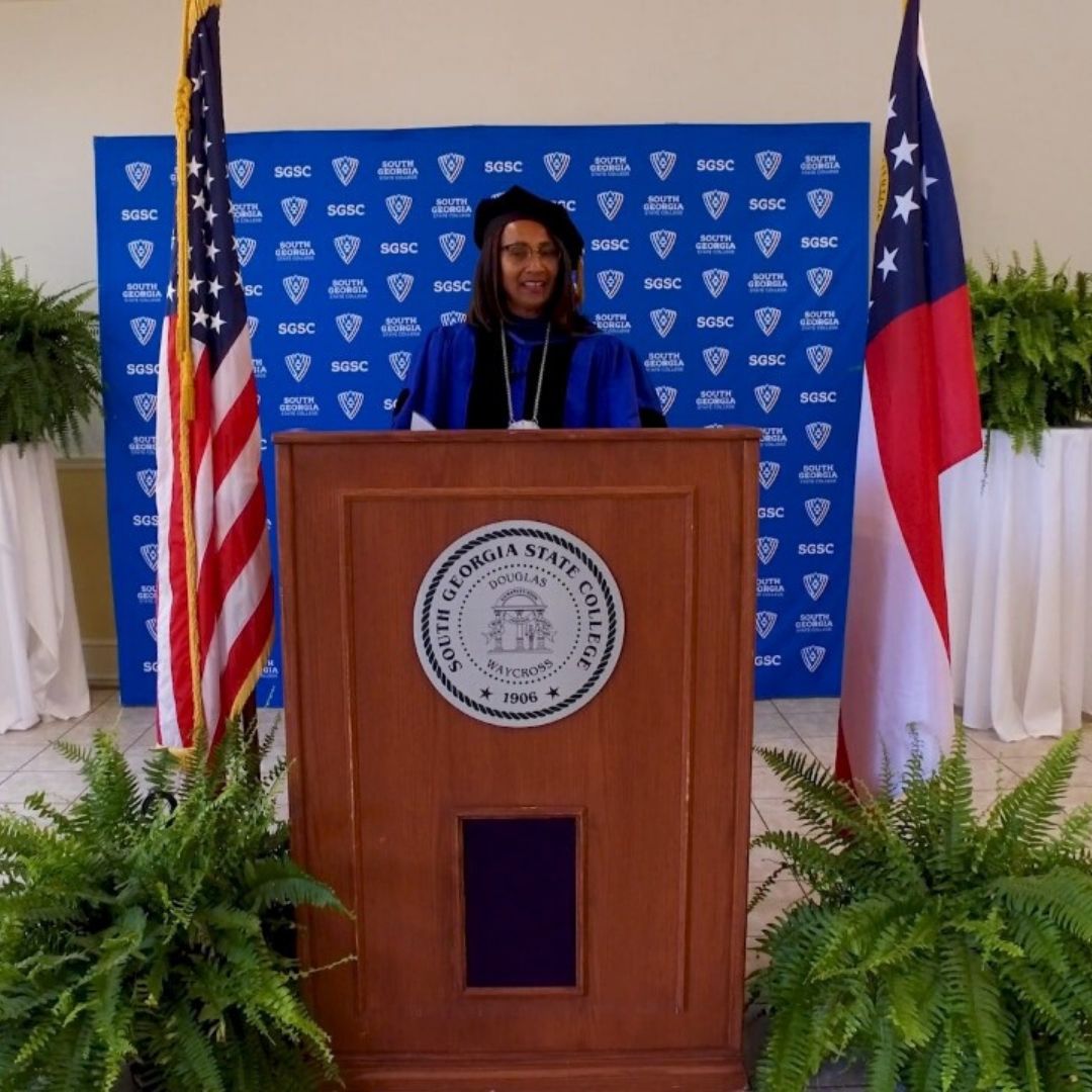 SGSC President Dr. Ingrid Thompson-Sellers gave a virtual address to the graduates during the College’s first online commencement.