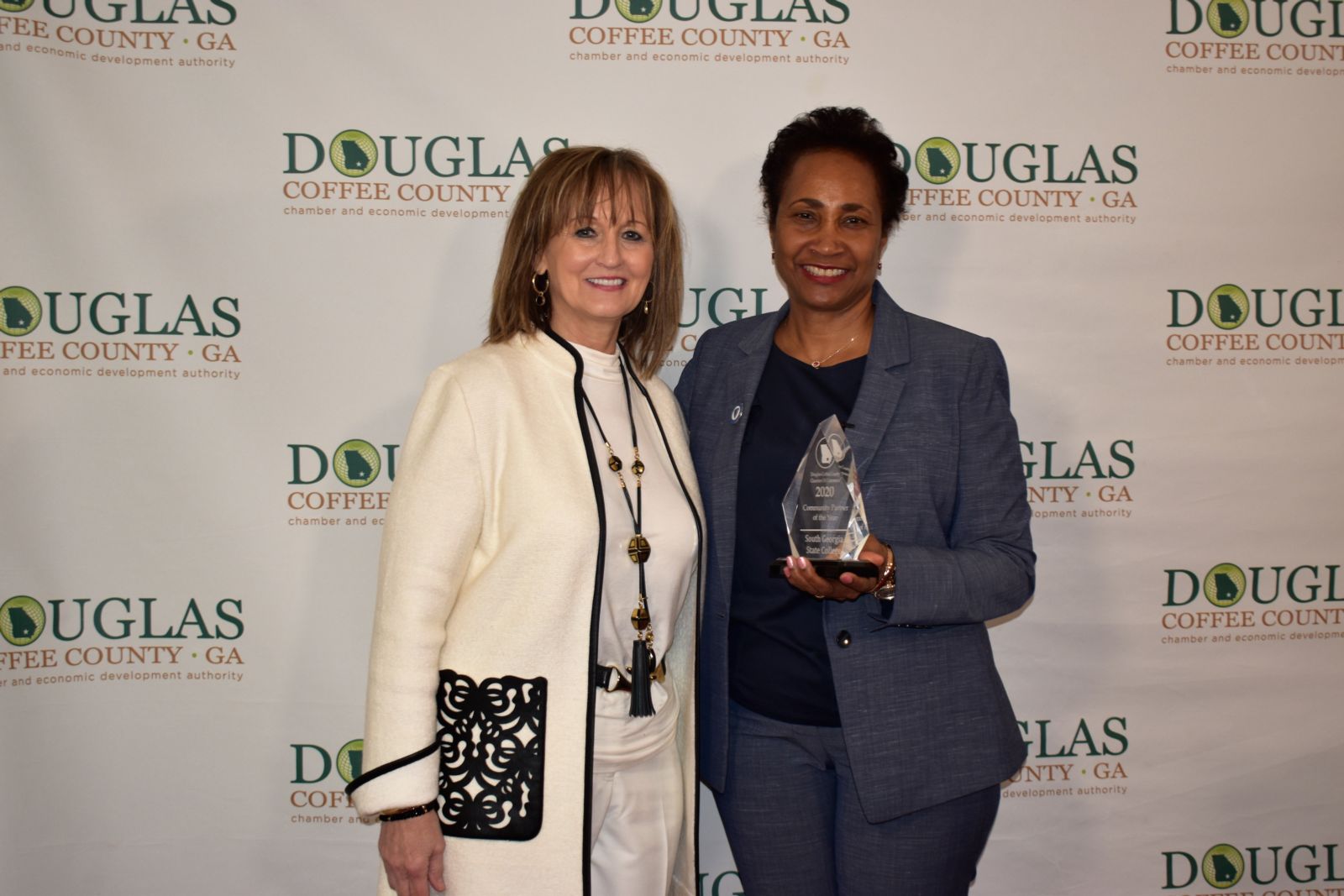 Douglas-Coffee County Chamber of Commerce held the 94th Annual Event and Awards Program virtually on Thursday evening, February 4, 2021, to celebrate the community by recognizing deserving individuals and businesses who consistently give of their time and talent, For the Love of Coffee. South Georgia State College was the recipient of a 2020 Community Partner of the Year award during the special event.