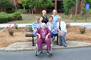 Members of the Waycross Woman’s Club gathered on South Georgia State College’s (SGSC) Waycross Campus recently to dedicate a beautification project sponsored by the Club. Eight red knockout roses were planted in a bed in front of the Waycross Campus Administrative Building in honor of longtime club member Edith Rigdon (front center in wheelchair). Other club members in attendance included (middle row L-R) Club President Lucy Todd, Penny Davis, and DeLois Carter; (back row L-R) Rita Arnold and Chris Music. SGSC Waycross Campus Director Taylor Hereford said he was grateful that the Waycross Campus was selected for the project. “I was excited when I learned the Waycross Woman’s Club selected our campus for their beautification project,” he said. “The roses are beautiful and have added a nice color to the campus. I’m proud we were able to partner with the Waycross Woman’s Club.”