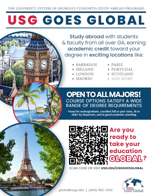 Please visit USG Study Abroad Programs for more information or you can contact us directly at studyabroad@sgsc.edu if you have any other questions.