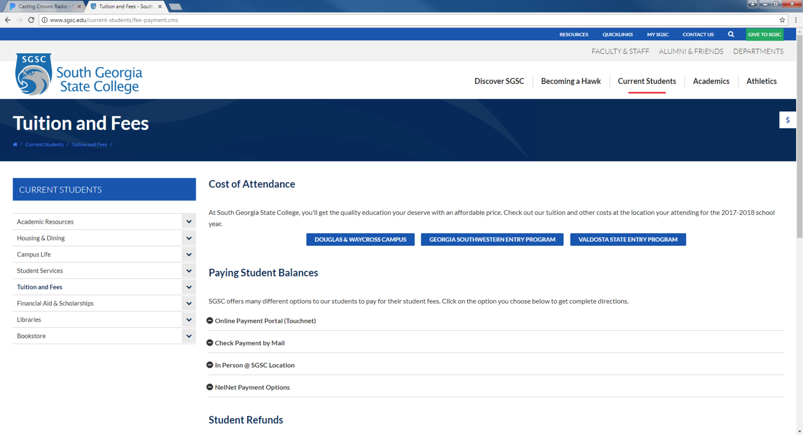 Yes, Students can pay for tuition and fees by cash, check, cashier checks, money order, or credit card at the cashier’s window on the Douglas and Waycross campuses.